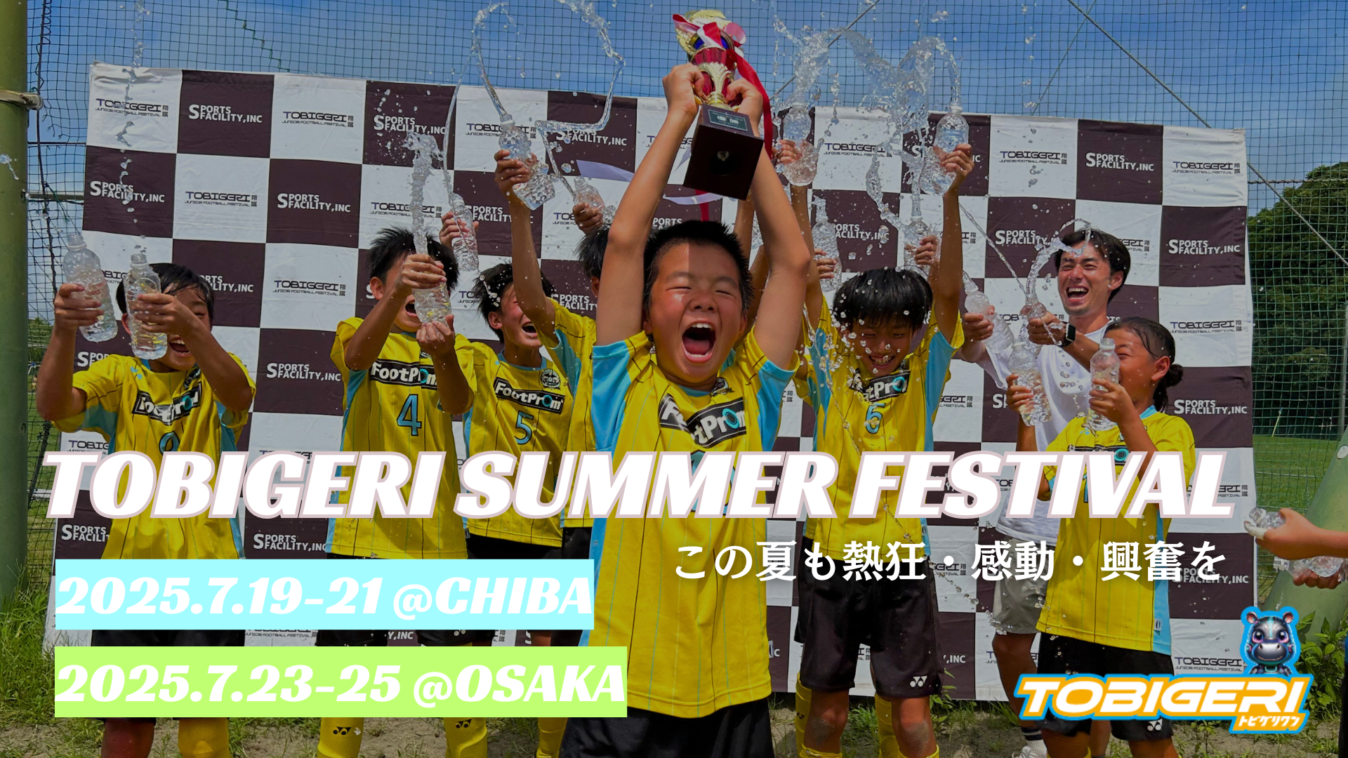 TOBIGERIの特徴の一つでもある華やかさ!エンタメ要素がたっぷり詰まった大会です。選手達はもちろんのこと、大人達も楽しくなってしまうようなイベントを目指しています!TOBIGERIオリジナルグッズ販売やYoutube大会リポート、公式SNSでの発信など来て楽しい!!見て楽しい!!「サッカーのある週末」を家族みんなで!!